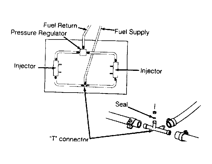 - Install Fuel Pressure Gauge (VW 1318) at fuel supply hose 3-way "T" connector. See Fig 1