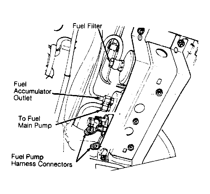 - Record voltage. Remove fuel line from outlet side of accumulator. See Fig 1 . Attach a piece of hose between return line and a graduated container. Activate fuel pump for 15 seconds. Compare volume with specifications given in FOX MAIN FUEL PUMP VOLUME table.