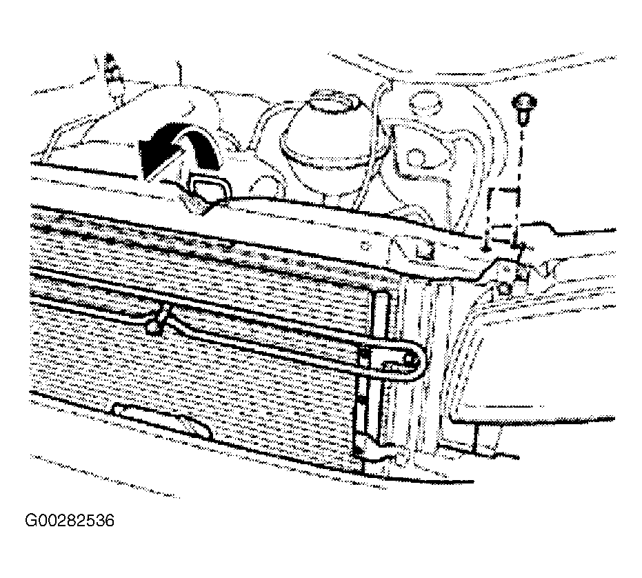 3. Remove radiator grille. Remove right and left securing bolts for lock carrier. See Figure . Tilt lock carrier with radiator toward the front.