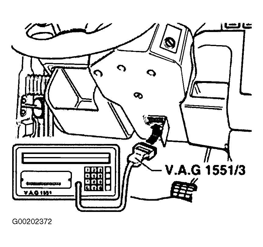 NOTE: If nothing is indicated on display, check voltage supply for VAG 1551 scan tool. Additional instructions can be called up via the HELP button on the scan tool. - The forward (right arrow) button is used for advancing through the program sequence. Function 00 "Automatic test sequence" can be performed in operating mode 1 "Rapid data transfer". This automatically checks all control modules installed in the vehicle.