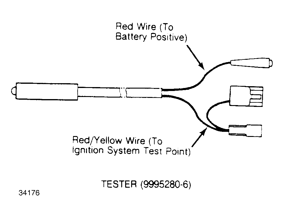 - Connect LED tester Red wire to battery positive terminal, Red/Yellow wire to ignition system test point (Red/Yellow wire on left side of engine compartment). See Fig 1.