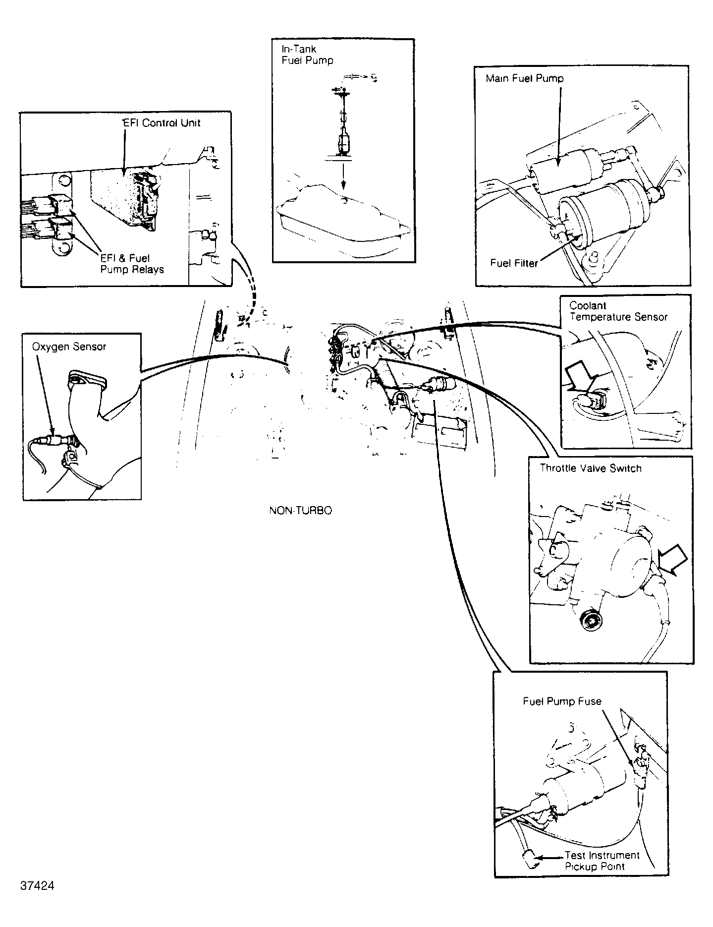 Idle Speed Control Unit (Turbo) Behind right kick panel, below EFI control unit. See Figure .