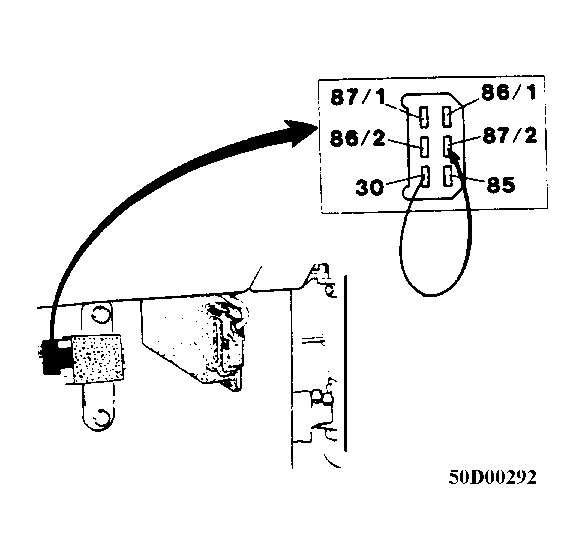 6. Switch off fuel pumps. Disconnect wire between terminals 30 and 87/2, See Fig 2 . Connect the connector to the main relay. Reinstall the panel under the dashboard.