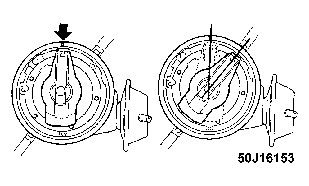 - Align rotor to notch on distributor housing. Turn rotor clockwise 30° and install distributor. See Fig 1 . Rotor should be aligned with notch when distributor is seated in position.
