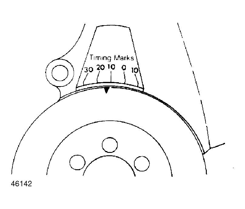 - Point timing light at marks on flywheel. See Fig 1 . Timing should be 12 +/- 2° @ 750 RPM. If timing is incorrect, loosen distributor clamp bolt and rotate distributor until marks are aligned. Tighten bolt.