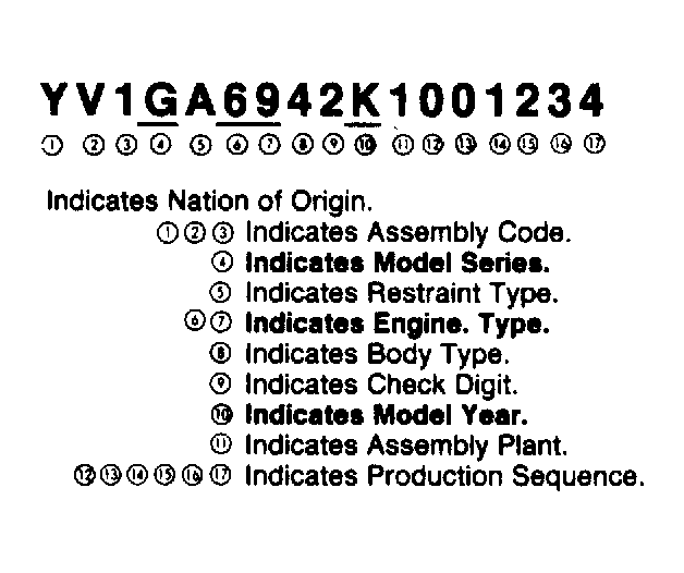 Numbers preceding the explanations in the legend below refer to the sequence of characters as listed on VIN identification label. An example similar to the legend listed below will also be found in Figure .