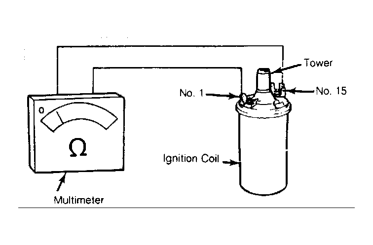 - If wires are okay but resistance is still not 0.6-1.0 ohm, connect multimeter to ignition coil terminals No. 1 and No. 15. See Fig 2 . If resistance is not 0.6-1.0 ohm, install a new ignition coil. If resistance is 0.6-1.0 ohm, check continuity of wires between ignition coil and power stage connector pins No. 1 and No. 4. Repair or replace as necessary.