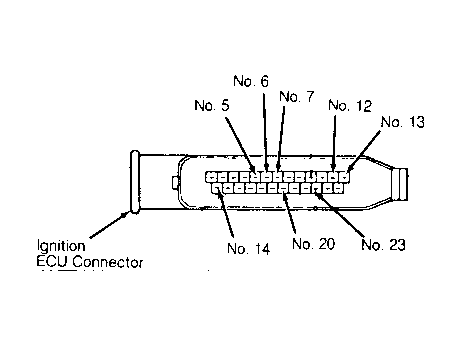 2. Turn ignition switch to ON. Voltmeter should read 12 volts (battery voltage. If no voltage exists, check pin No. 20 wire for bad ground.