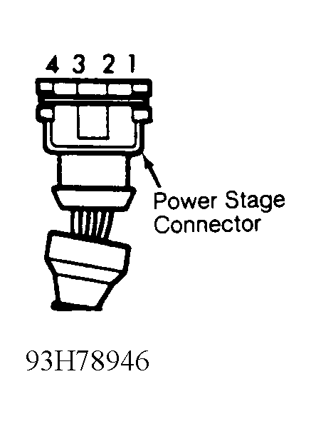 - Check power stage control signal by connecting voltmeter between terminal No. 4 and ground. Operate starter motor. Voltmeter should indicate .7-1.3 volts. If ground, voltage and control signal are okay, repeat test using new power stage. If ground connection and voltage are faulty, check wiring. If control signal is not present, go to next step and check ECU input and output signals.