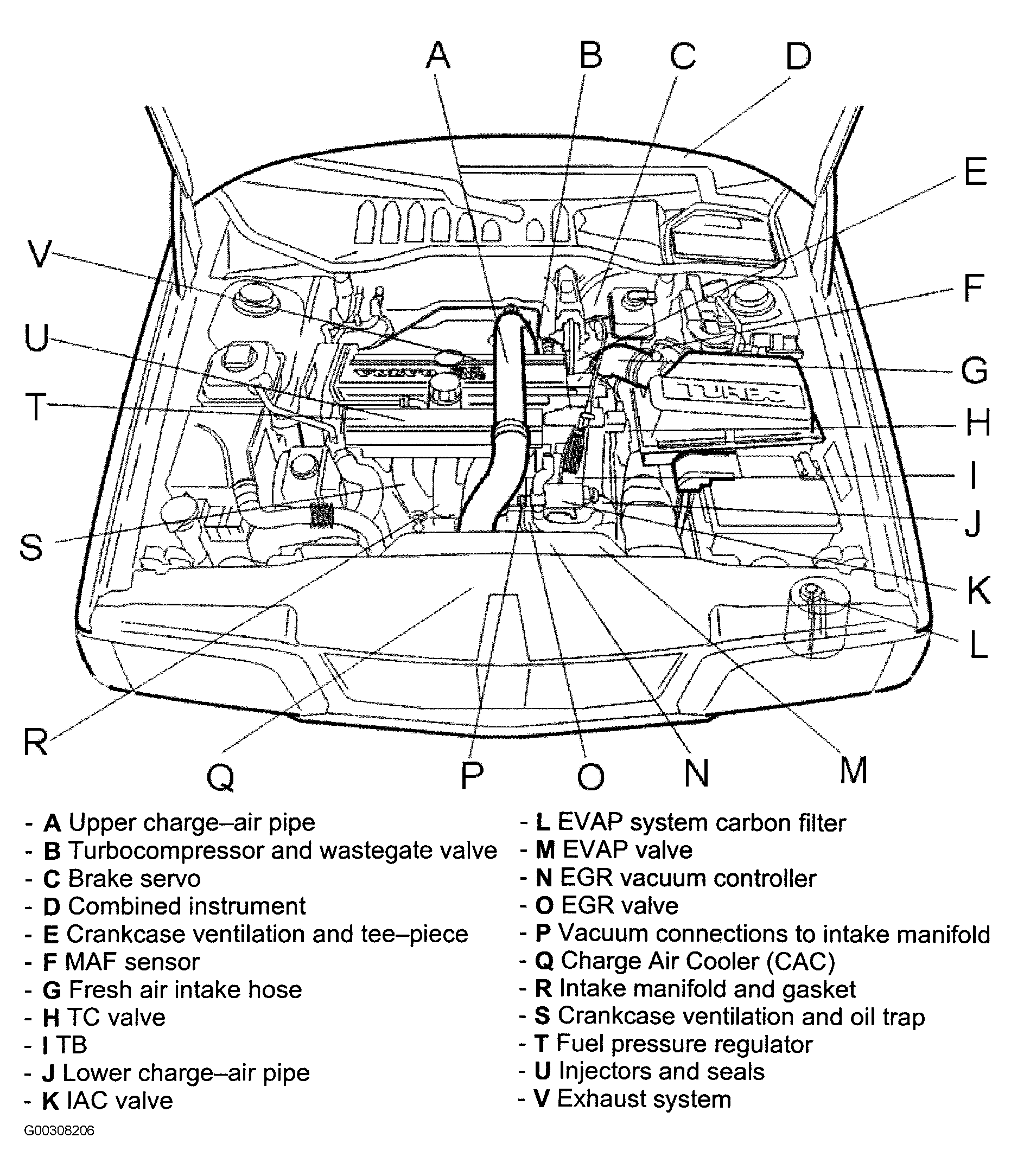 - Check components (A-V). See Fig 2. Check connectors (A-G). See Fig 3. If leak is suspected, spray soap solution onto area of suspected leak to find where air is escaping from. Repair as necessary.