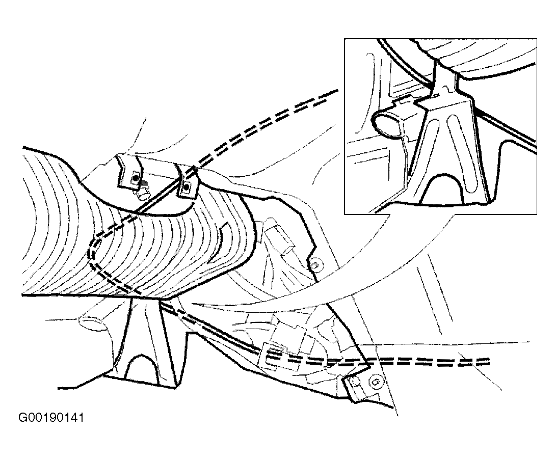 - Insert cable through knee bolster bracket and over bolster. See Fig 2 .