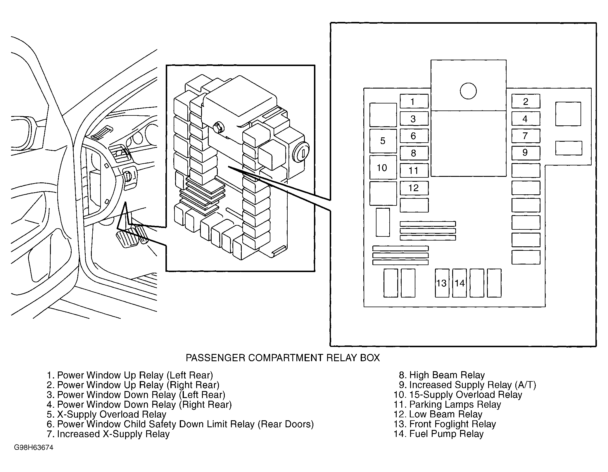 | Passenger Compartment Relay Box | Behind left side of dash. See Figure . |