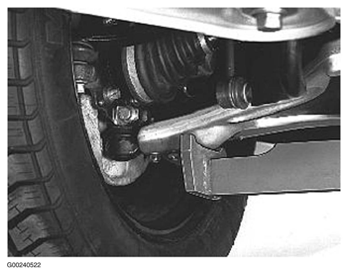 - Lift up front end of vehicle under the control arms as close to the ball joints as possible. See Fig 1