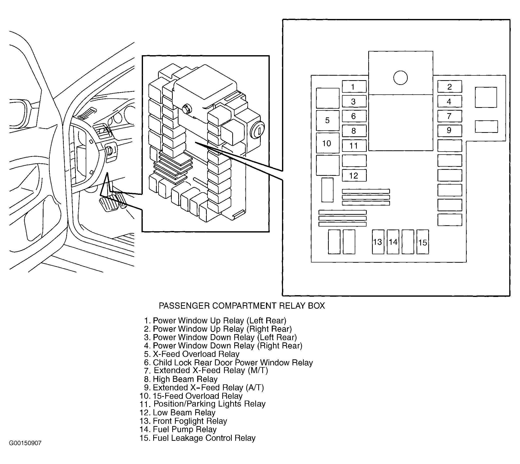 | Passenger Compartment Relay Box | Behind left side of dash. See Figure . |