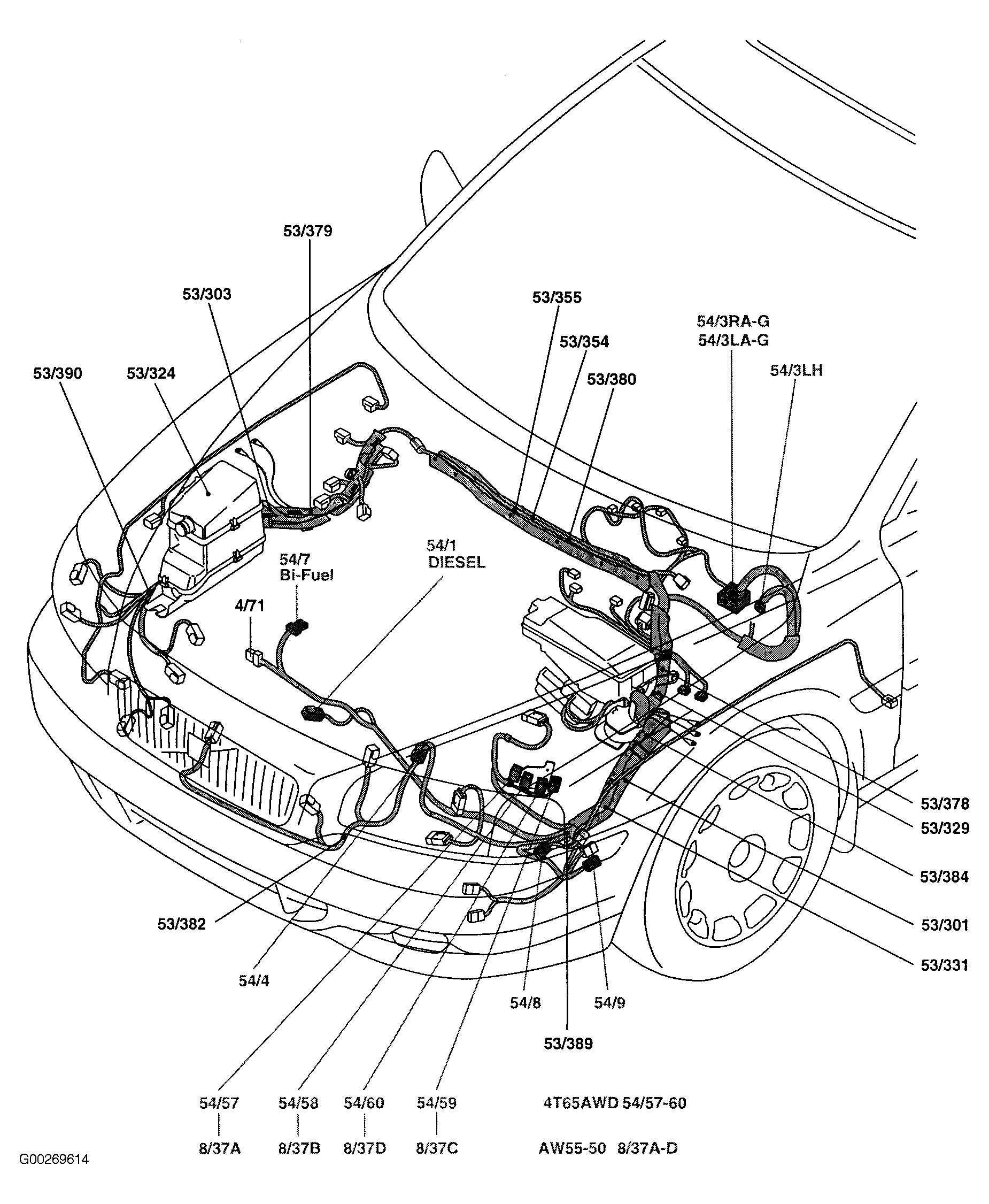 | 53/382 | In engine compartment harness, left front of engine compartment. See Figure. |