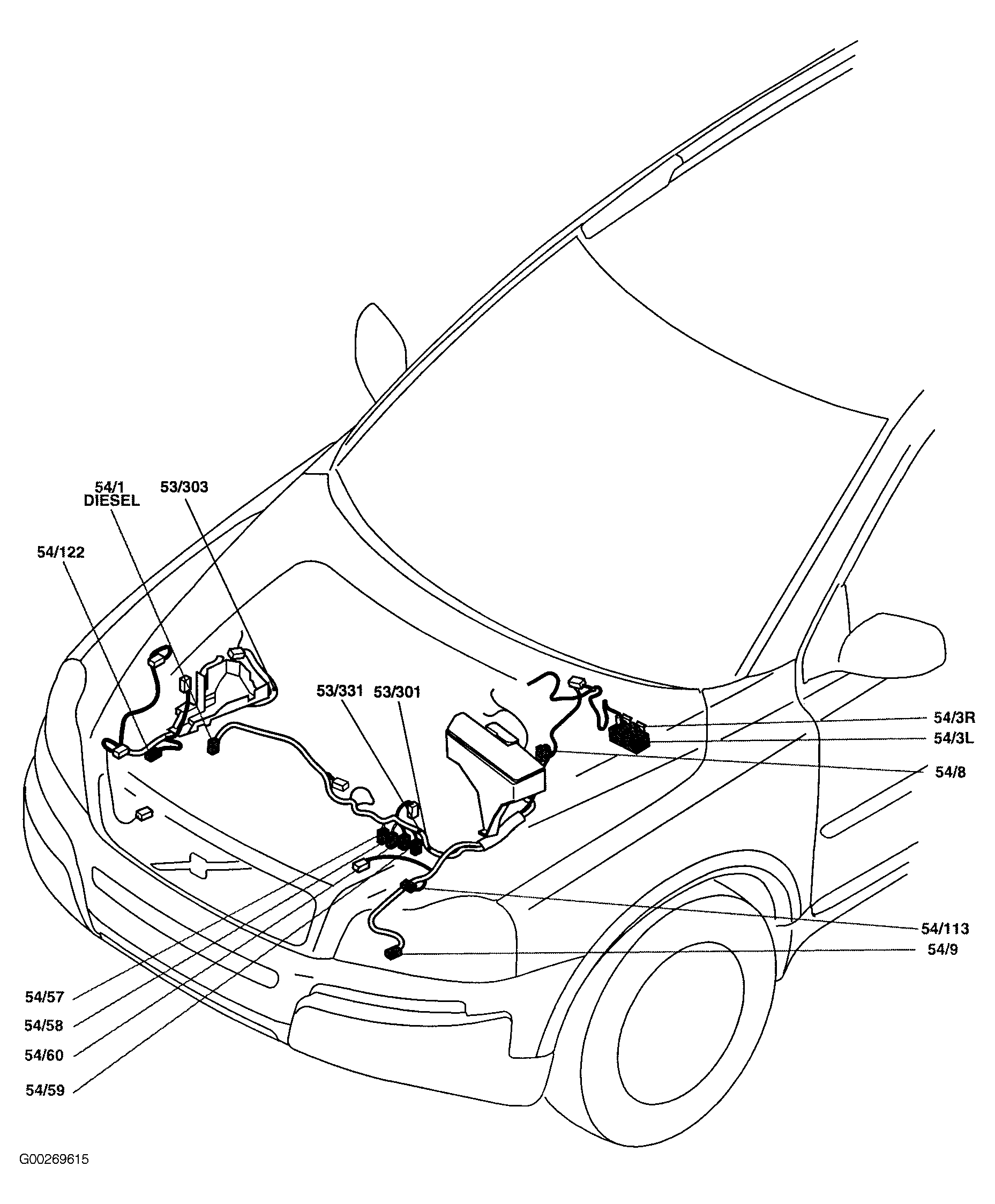 | 53/301 | In engine compartment harness, at left front of engine compartment. See Figure. |