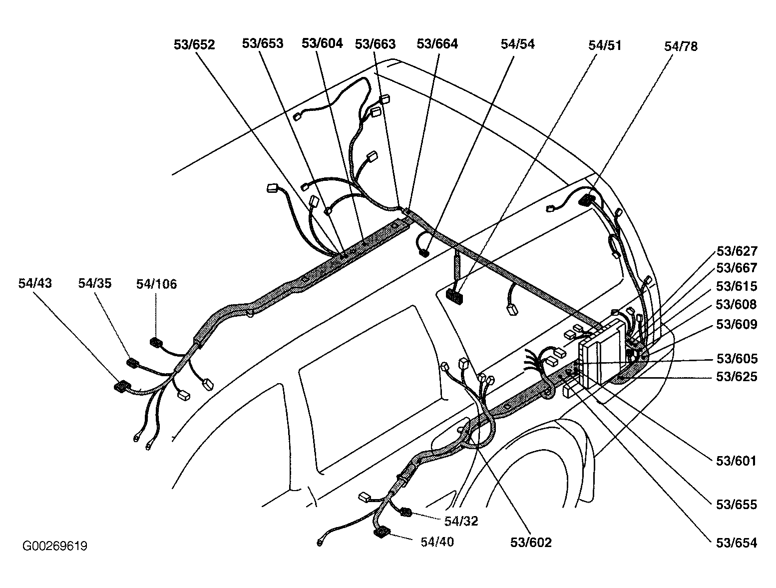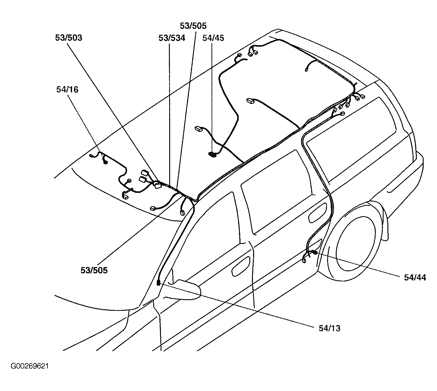 | 53/509 | In roof harness, forward of sun roof. See Figure. |