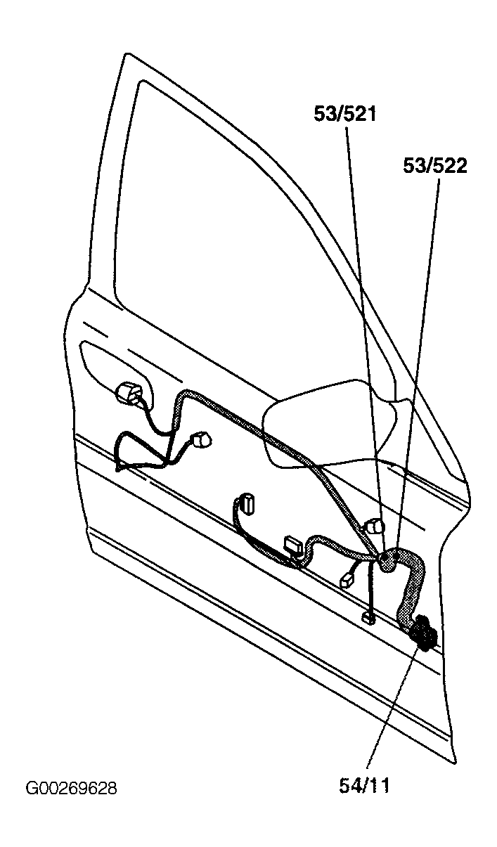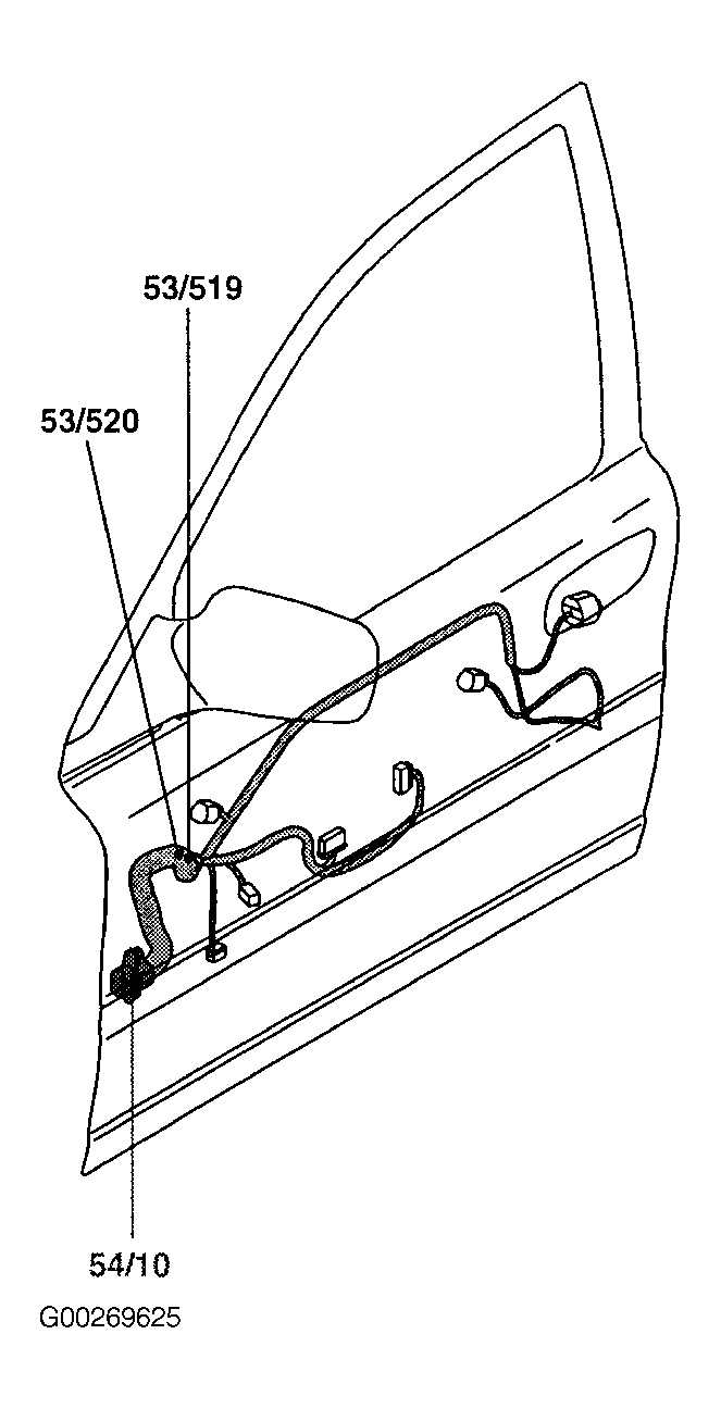 | 53/512 | In rear passenger compartment harness, at base of left "C" pillar. See Figure. |