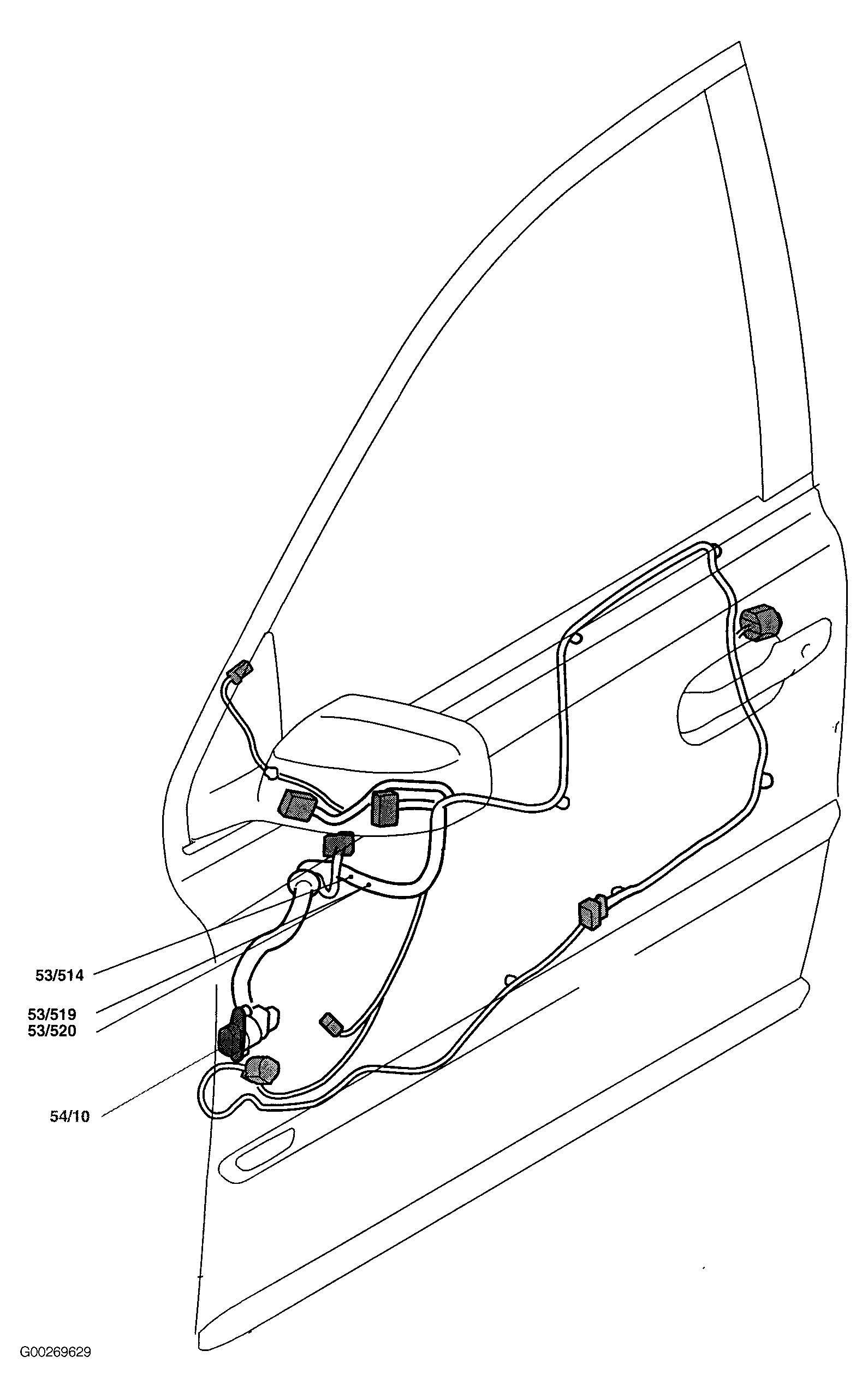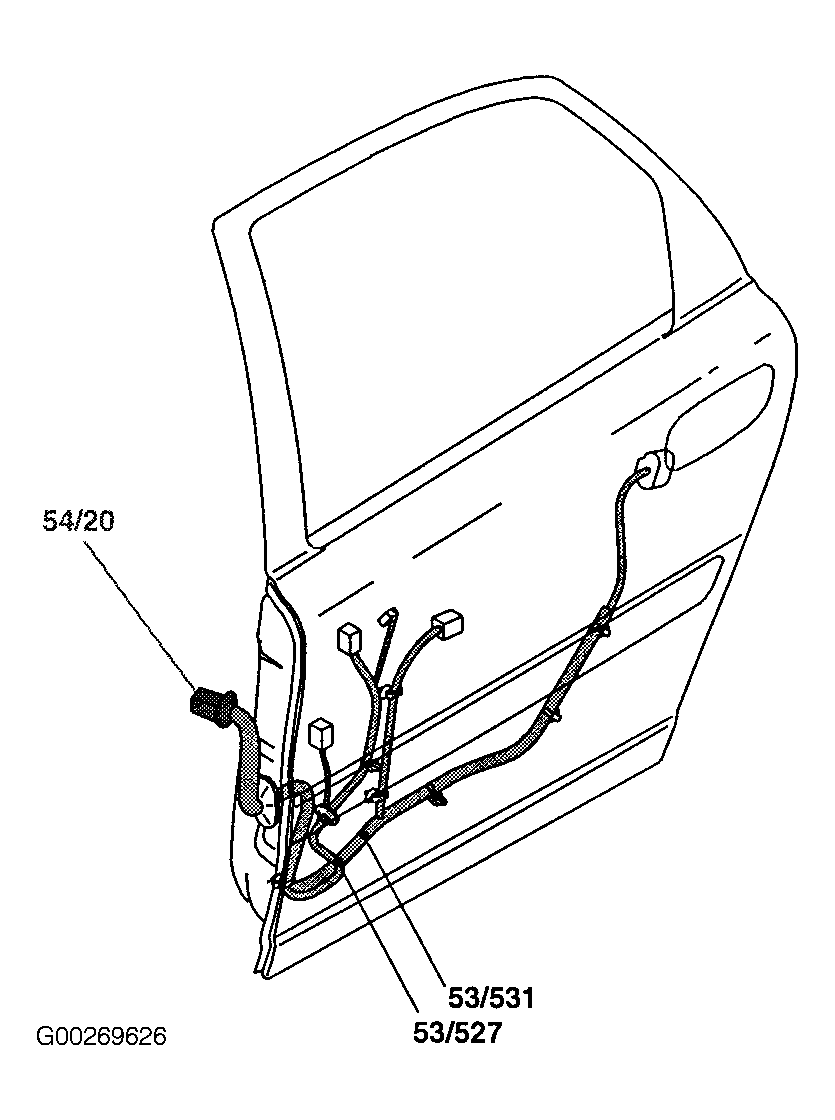 | 53/431 | In front passenger compartment harness, at left kick panel. See Figure. |