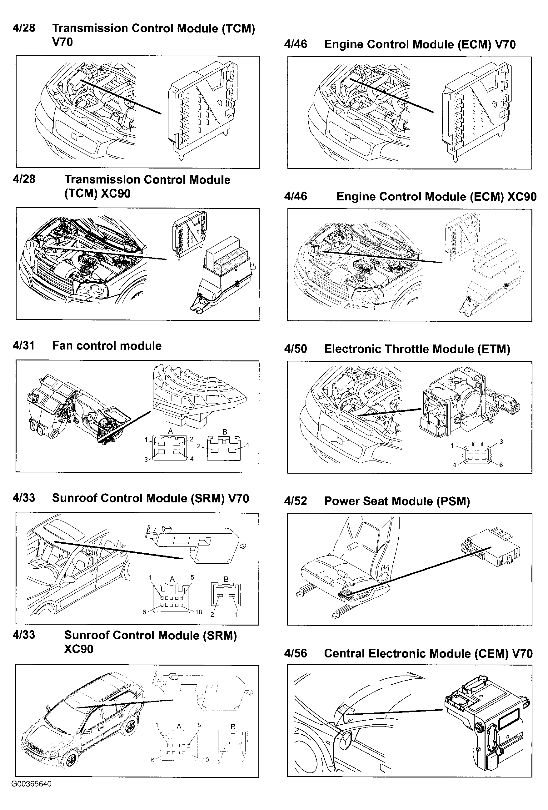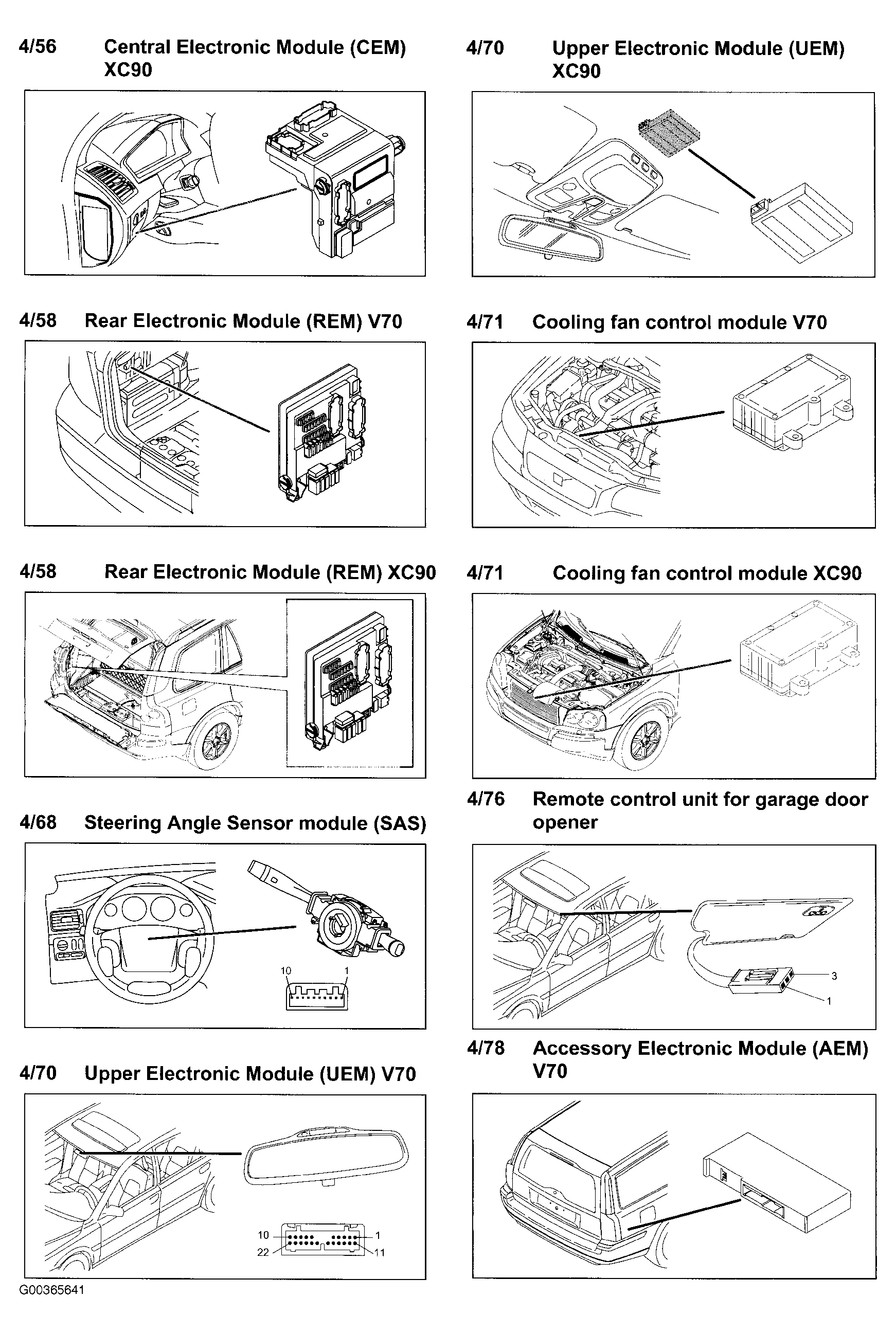 | Central Electronic Module (CEM) (XC90) (4/56) | Behind left side of dash. See Figure . |