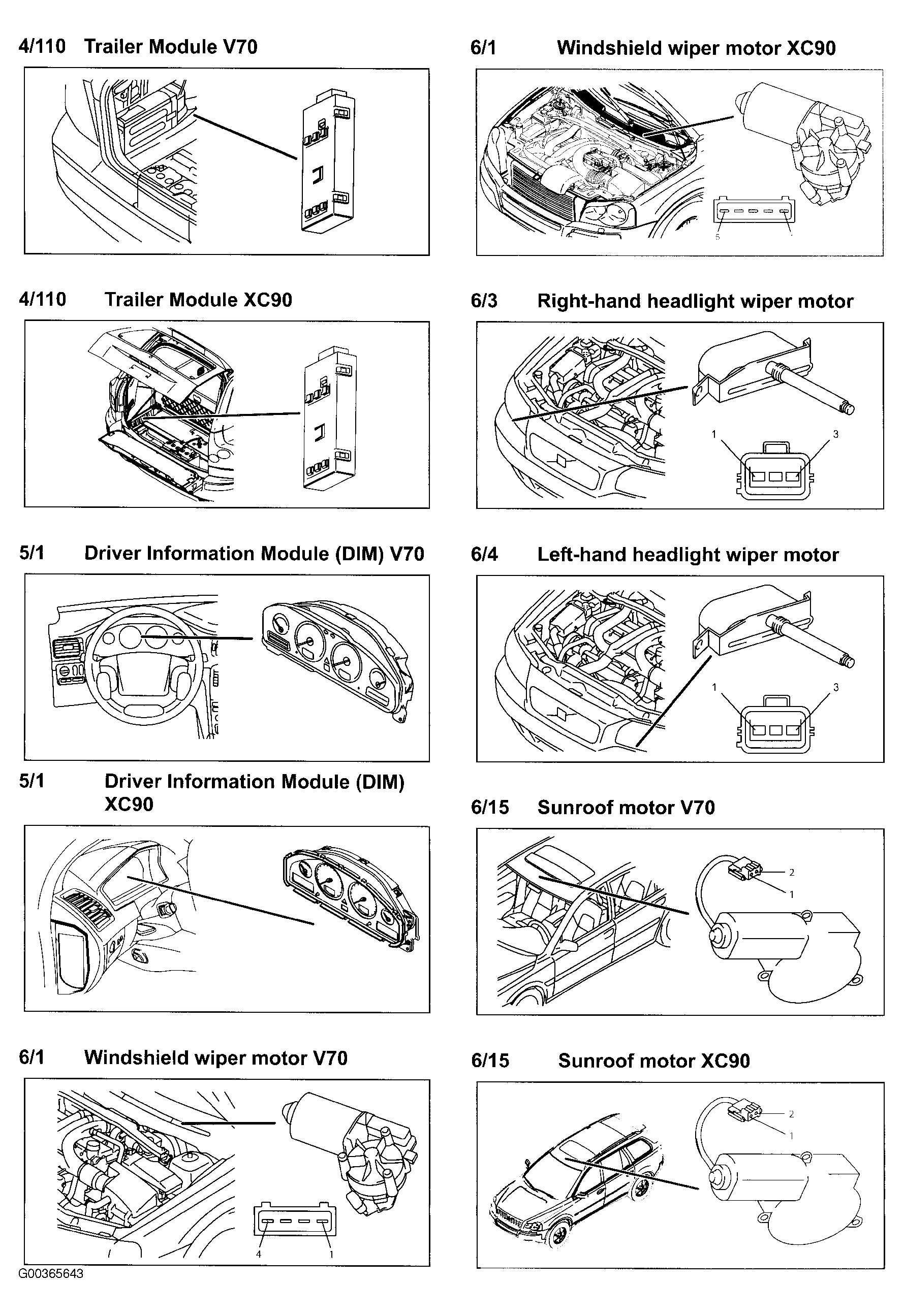| Upper Electronic Module (V70) (4/70) | Integral to rearview mirror. See Figure . |