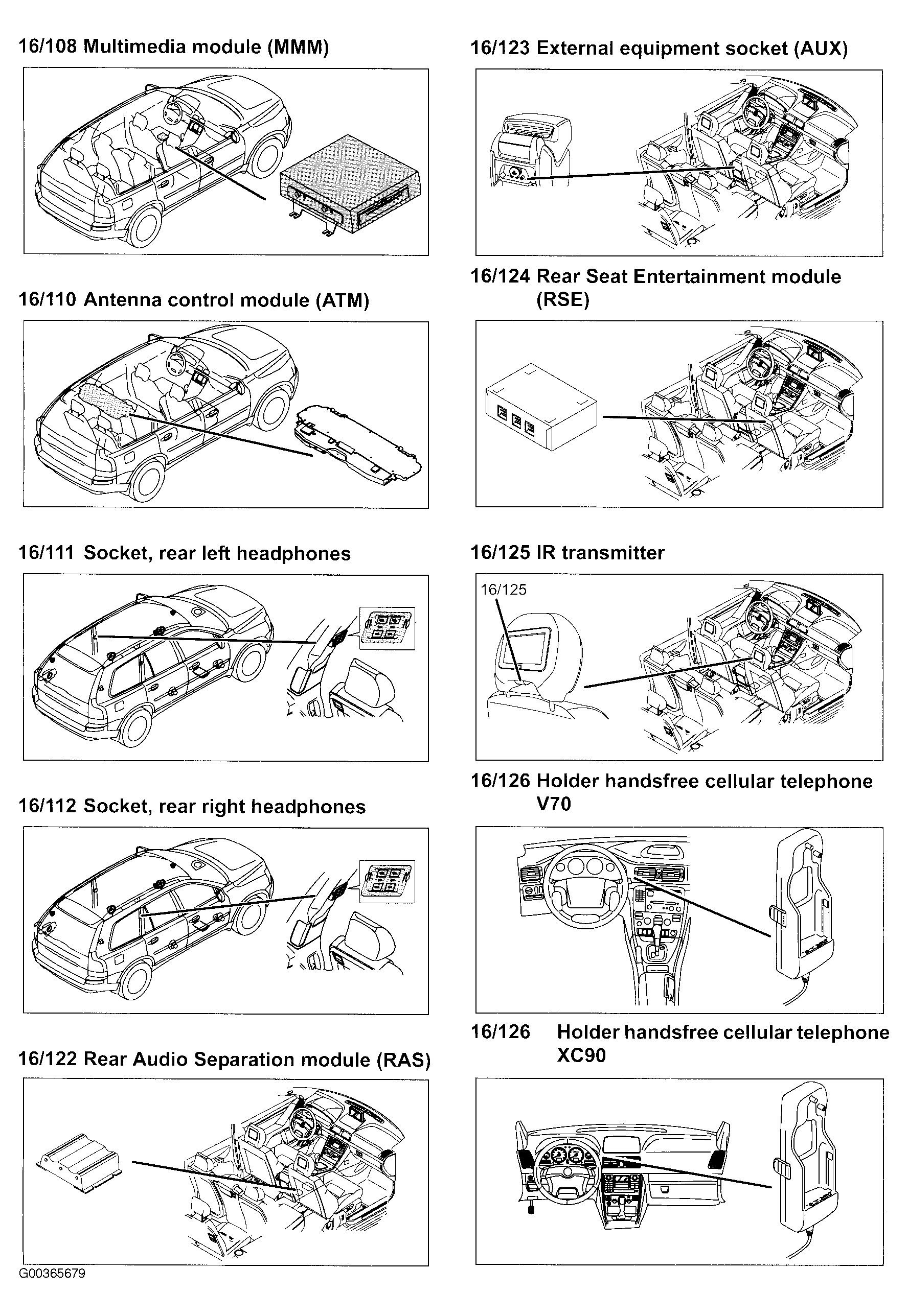 | Audio Module (AUD) (16/105) | Under right front seat. See Figure . |