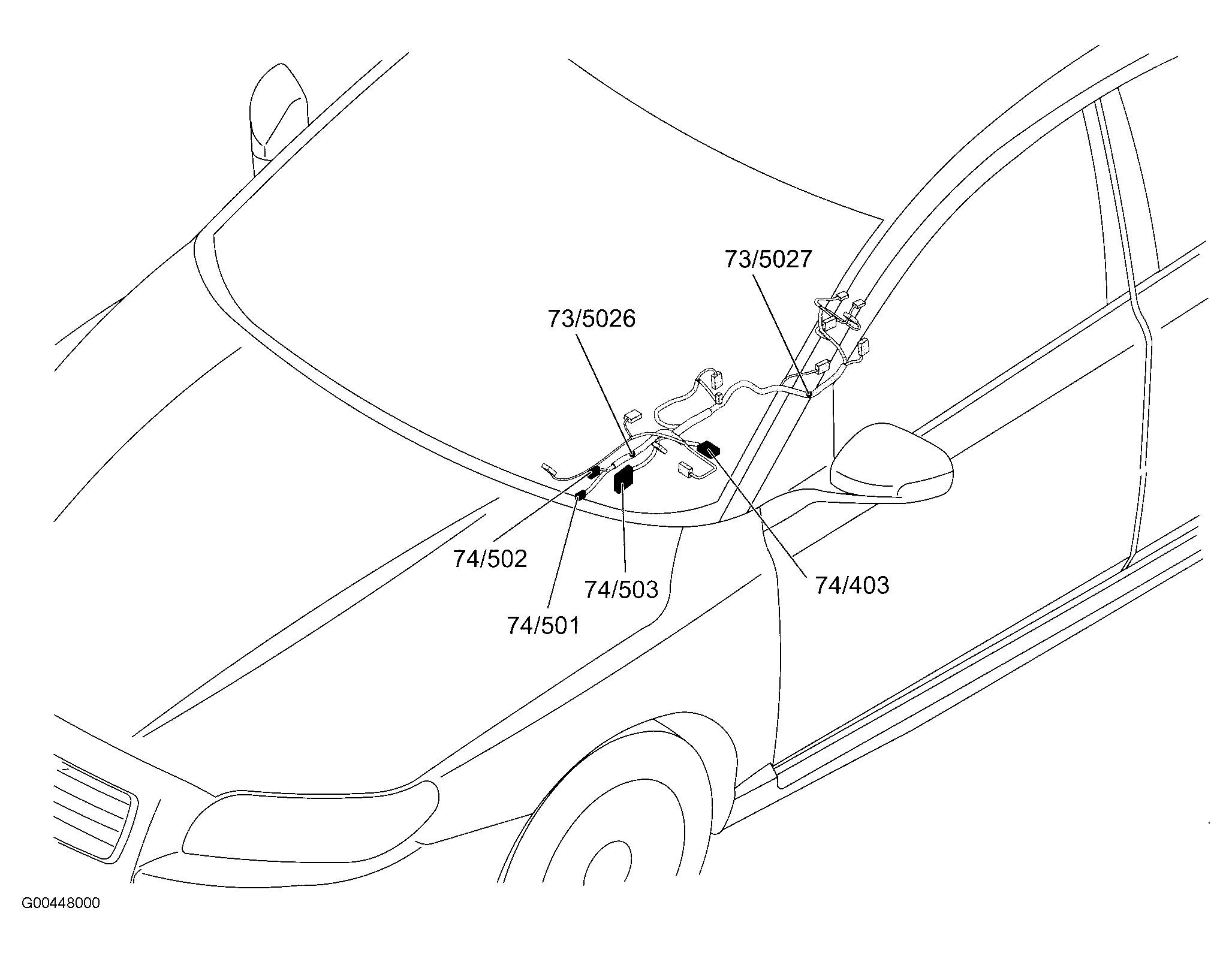 | S73/4031 | In roof harness, at center front of roof. See Figure. |