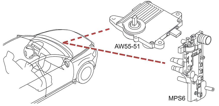 | Transmission Control Module (TCM) | Rear of engine compartment. See Figure. |