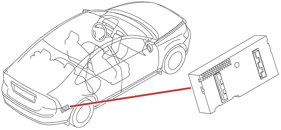 | Accessory Electronic Module | Right rear of luggage compartment. See Figure. |
