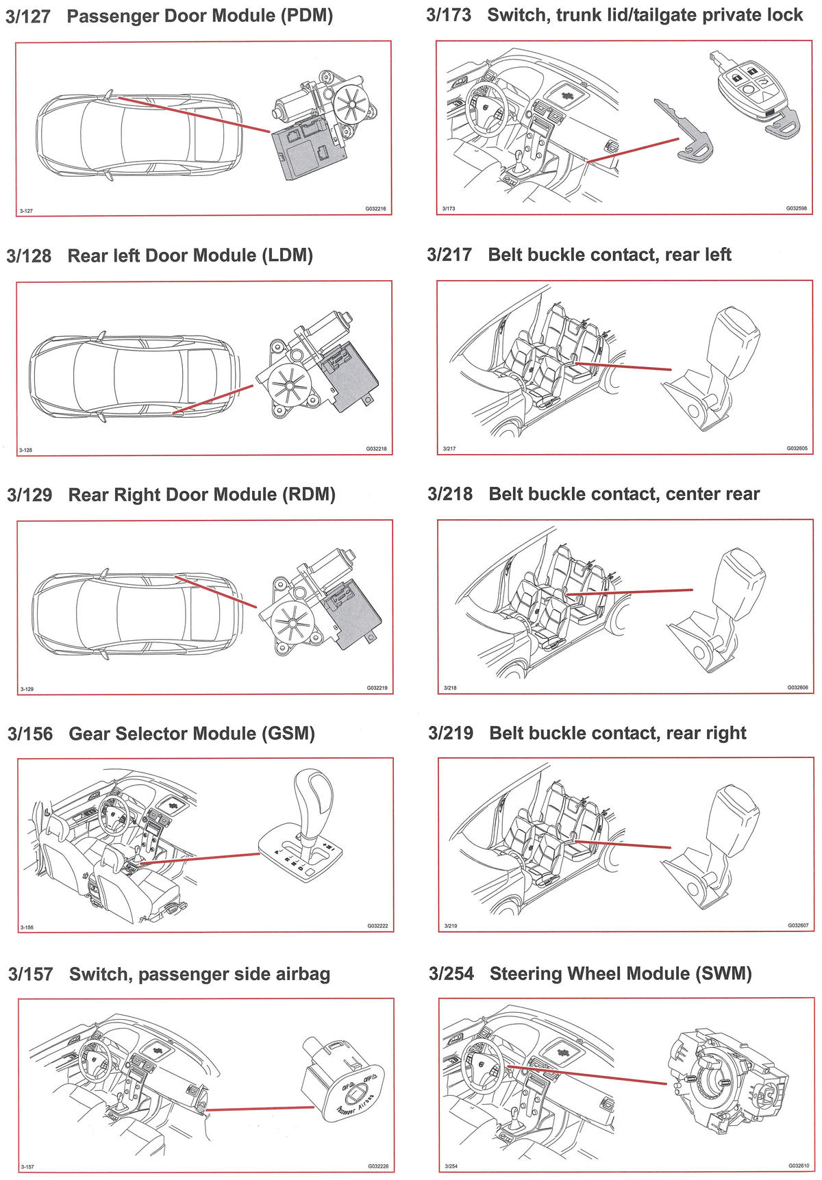 | Passenger's Door Module (PDM) (3/127) | In passenger's door. See Figure. |