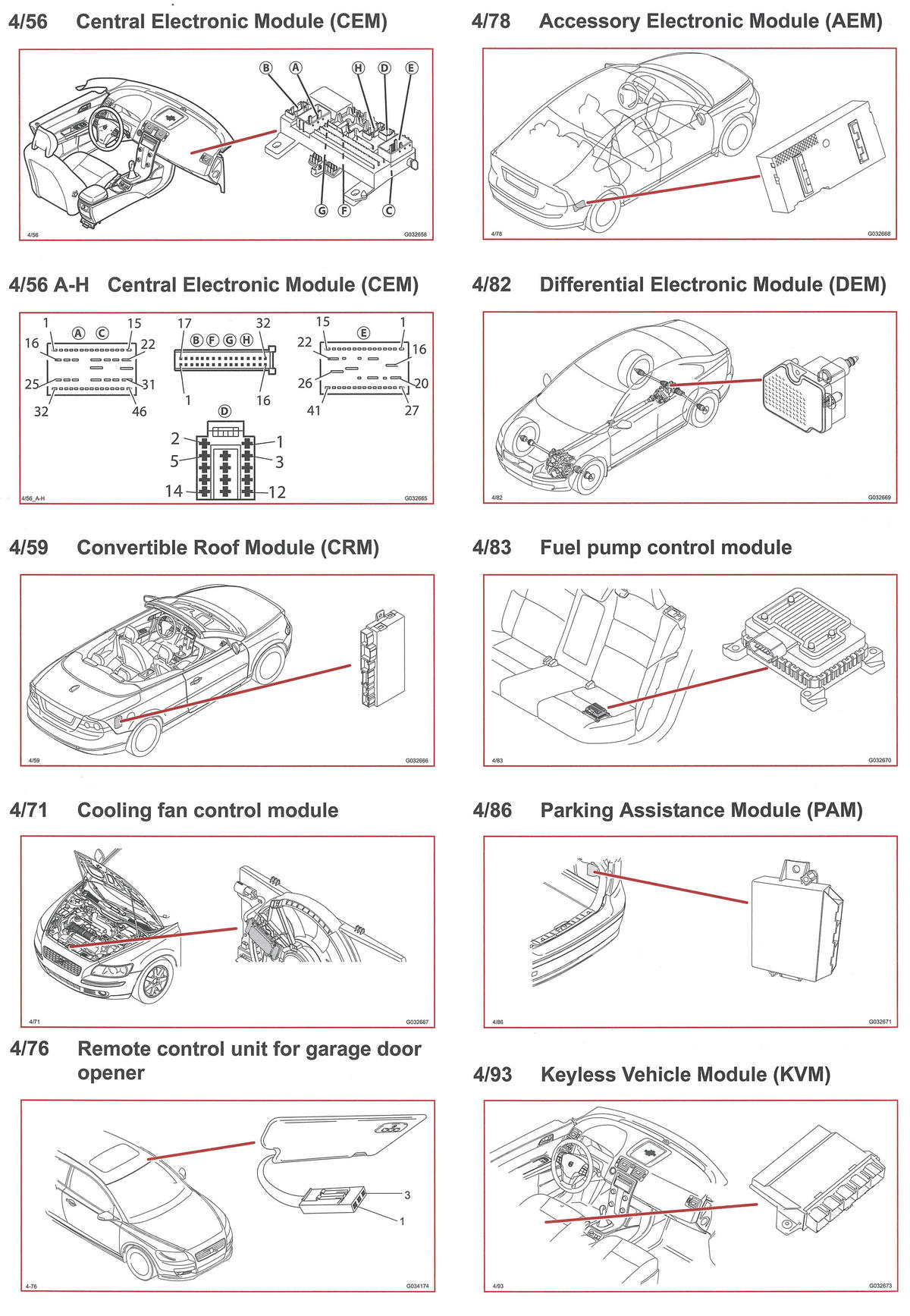 | Convertible Roof Module (CRM) (4/59) | Right side of luggage compartment. See Figure. |