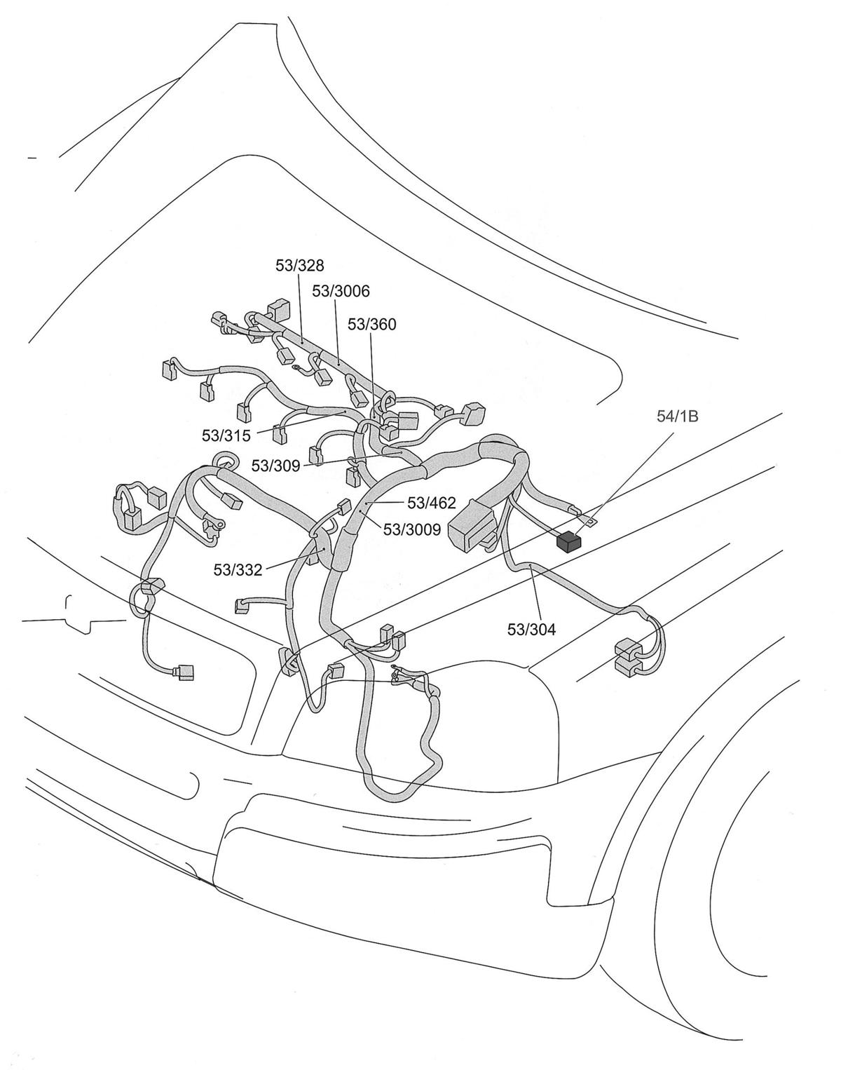 | S53/396 | In engine compartment harness, at side of engine compartment. See Figure. |