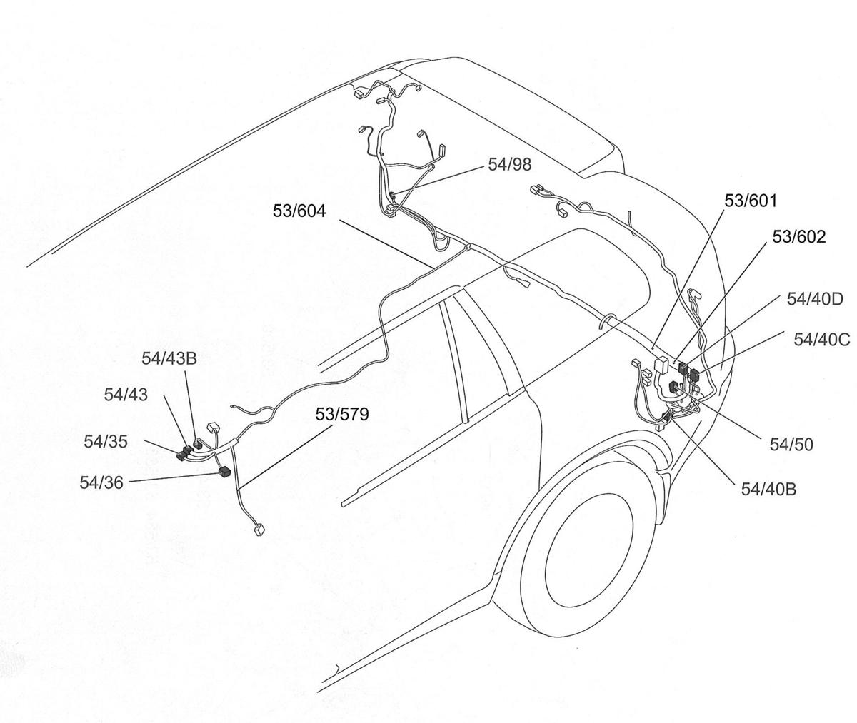 | S53/606 | In tailgate harness, at top left of tailgate. See Figure. |